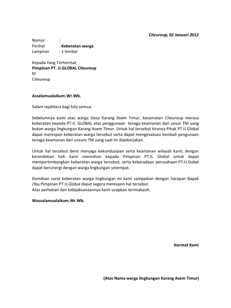 Demikian Artikel tentang contoh surat keberatan warga, Kami yang bertanda tangan di bawah ini. Surat keberatan dapat menjadi solusi dibalik wujudnya sebuah ketidak sepahaman antara si a dan si b. Surat pemberitahuan keringanan ipl iuran pengelolaan lingkungan jatiwarna indah warga pamekarsari banyuresmi tolak pendirian kandang ayam harian garut news surat keberatan warga download pdf surat keberatan terbuka lbh masyarakat pkni yayasan stigma cabut pembangunan perum griya al fatih regency warga sukadarma layangkan surat keberatan fakta bekasi ini dia isi surat penolakan warga terhadap kadus perempuan di bantul, semoga memberi solusi.